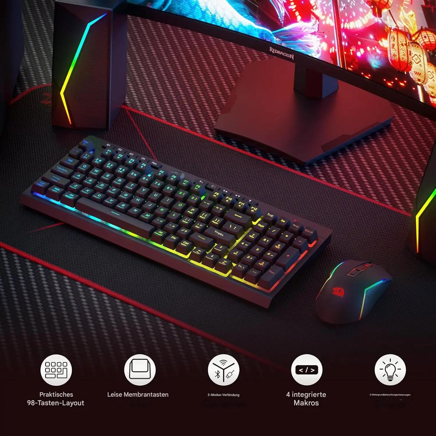 Upgrade dein Gaming-Setup zum besten Preis-Leistungs-Verhältnis! Mit der Redragon S142 Combo bekommst du ein Wireless Keyboard und eine Maus, die für Geschwindigkeit, Präzision und stylisches RGB-Design stehen – perfekt für Gamer, die alles im Griff haben wollen.